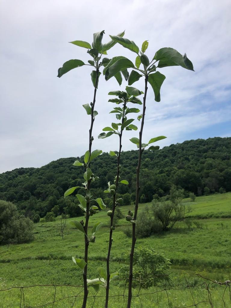Most of our wild crabs hold all winter. The deer and turkey are under them every day until the fruit is gone. Thankfully that is about spring green up. We planted 25 apple and crab apples this spring. Most of them came from the MDHA. Of the trees that came from the MDHA most of them produced fruit the first year. I went around the other day and pinched off the fruit. I don’t know crap about fruit trees so I hope I did the right thing. If not there is always next year.