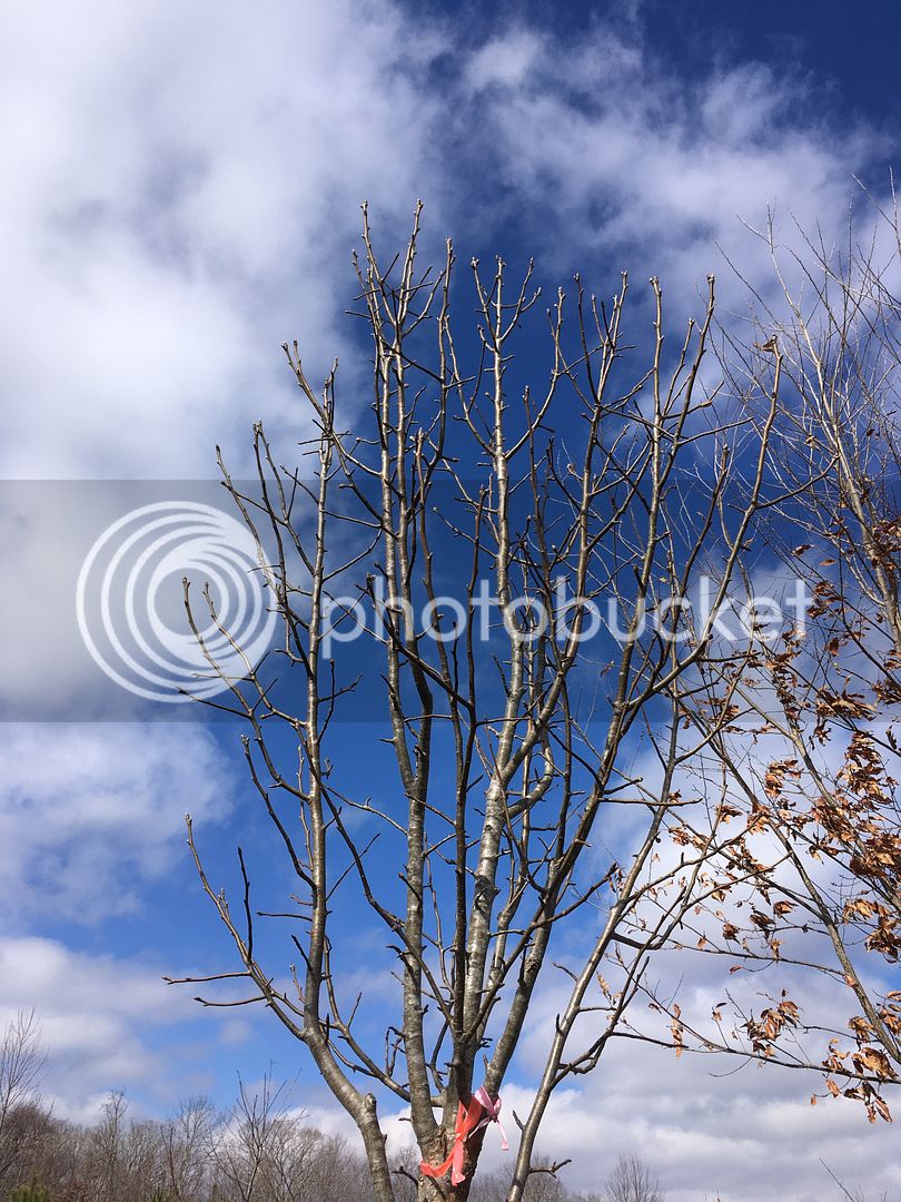 I noticed this pear when working in my trees the other day and thought it had a pretty nice shape for a pear tree. I think this tree was set as a whip in the spring of 2013, so it has flat out grown quickly. If I remember correctly it had about 20 pears last year. If it doesn't get frozen out, it should have a bumper crop this time.